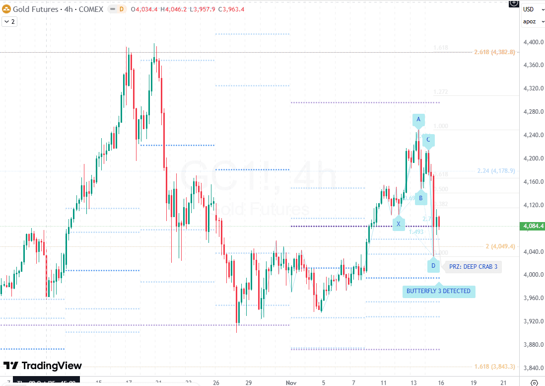 現在、シルバーと同じく、ワン・ツー・スリーと調整波のような動きをして、バタフライパターンが出ています。