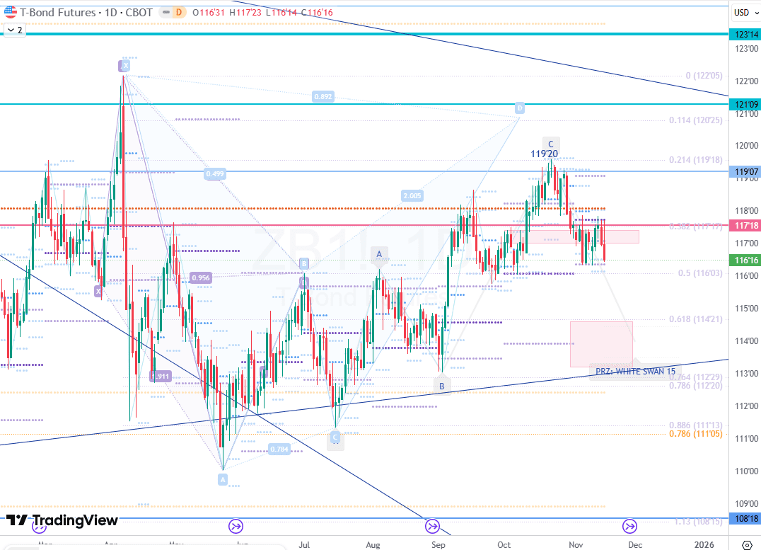 キーレベルの辺りでうろうろしていて、どちらにも転びそうな絵柄です。2年金利のチャートだと、すでにシェアしていたサイファーパターンを形成する可能性がありますが、ZBの場合、トレンドラインの下限まで落ちてくる可能性もあり。しばらく、うろうろされる可能性がありますが、売り込まれた後のプライスアクションに注目です。